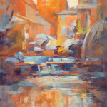 Huiles au couteau – Aquarelles – Techniques mixtes – Collages